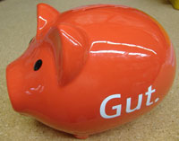 Sparschwein / Porzellanschwein mit Slogan: „Gut.“, 20 cm