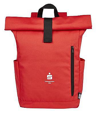 Material: zertifiziert recycelter Polyester, Maße: 28 x 11 x 41 cm. Praktischer, robuster und wasserabweisender Roll-Top-Rucksack mit einem großen Innenfach, mit 15,6"-Laptopfach, einer Vordertasche mit Reißverschluss und 2 Seitentaschen. Gepolsterte Rückseite, verstellbare und gepolsterte Schultergurte, Trageschlaufe und praktischer Rollverschluss mit Klicksystem an der Oberseite. COOL!!